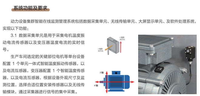 動力設備集群智能在線監(jiān)測管理系統(tǒng)集成于狀態(tài)監(jiān)測設備上,可通過設備自帶的網絡接口訪問的基于 Web服務的軟件,用于狀態(tài)監(jiān)測任務的配置,實時監(jiān)測數據的分析和查看。安裝于服務器上器上的設備組態(tài)軟件,用于對監(jiān)測對象進行組態(tài),實時顯示設備群組、單獨設備、單獨測點的監(jiān)測狀態(tài),進行可視化狀態(tài)檢測及設備狀態(tài)的在線可視化。