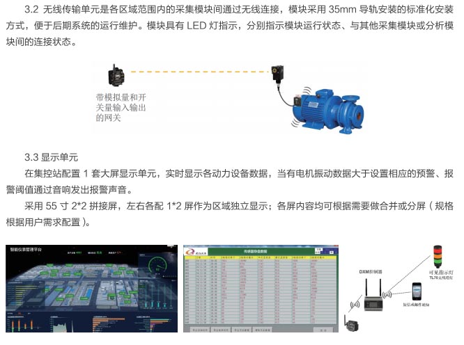 3.4軟件系統(tǒng)需提供人機界面軟件,直觀指示電機等設備的振動數據;分析處理設備數據,判斷設備狀態(tài),識別設備故障;提供設備狀態(tài)、報警信號等送至管理維護人員。